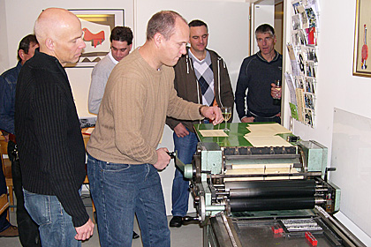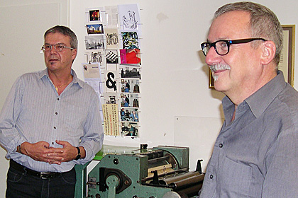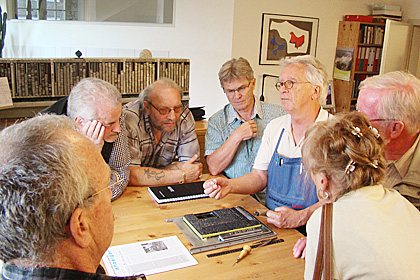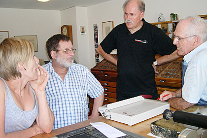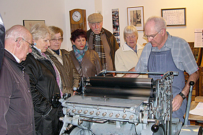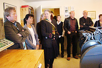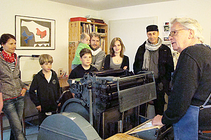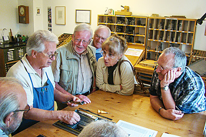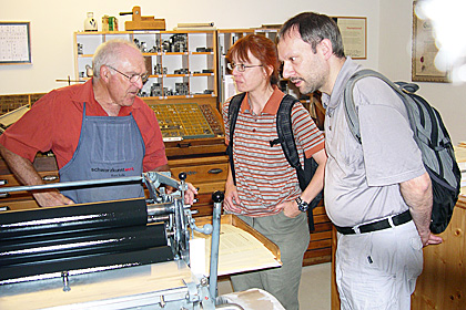 Immer wieder kommen Berufsleute, pensionierte Kolleginnen und Kollegen, aber auch Interessierte des grafischen Gewerbes in die Druckwerkstatt.