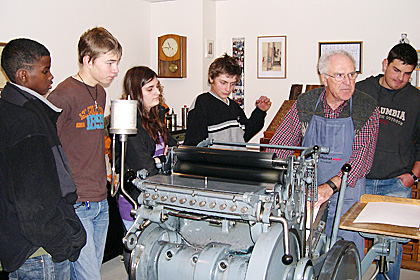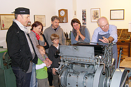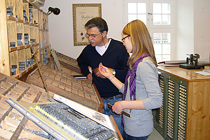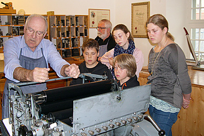 Nach einem Besuch der Stiftsbibliothek im Kloster bietet sich eine Besichtigung unserer Druckwerkstatt an.