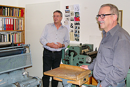 Immer wieder kommen Berufsleute, pensionierte Kolleginnen und Kollegen, aber auch Interessierte des grafischen Gewerbes in die Druckwerkstatt.