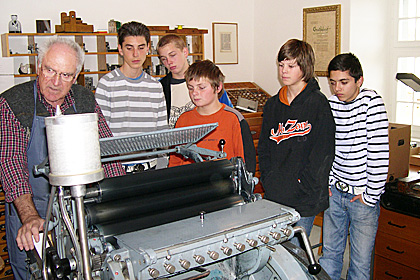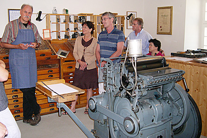 Nach einem Besuch der Stiftsbibliothek im Kloster bietet sich eine Besichtigung unserer Druckwerkstatt an.